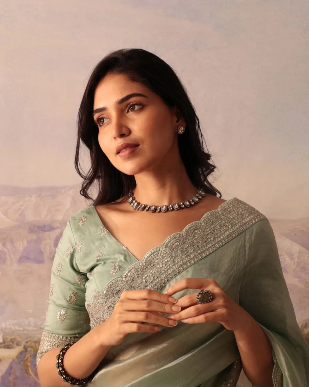 Add a touch of grace to your ethnic wardrobe with this elegant pastel green silk saree. Designed with a beautifully scalloped embellished border, this saree brings together subtle charm and festive appeal. The smooth silk fabric drapes effortlessly, while the matching blouse piece completes the look. Perfect for weddings, parties, and traditional celebrations, this saree is a timeless addition to your collection.