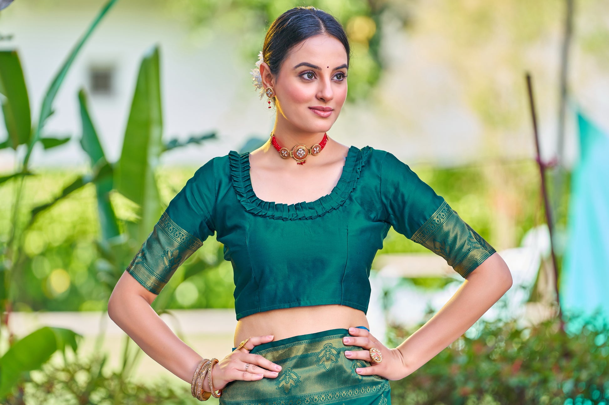 Woven Banarasi Jacquard, Silk Blend Saree With Unstitched Blouse (Light Blue)